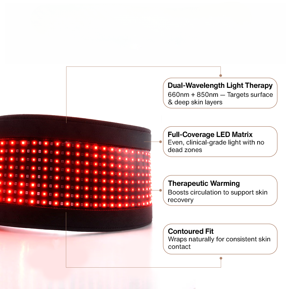 A premium infrared waist belt created for at-home body care and overall comfort. Designed to help enhance the appearance of a smoother, more refined waistline, the belt delivers gentle, soothing warmth to the midsection, supporting a more defined and supported core.